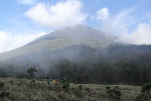 Karena memulai baru tengah hari, saya bilang pada Omenk yang piket hari itu di basecamp, saya kemungkinan besar akan ngecamp, mendirikan tenda di Pos 2. Lewat Pos 2 saya pasti akan kemalaman untuk menuju Pos 4 atau Mata Air yang ada di ketinggian 2.578 m, tempat biasa para pendaki menginap. Pos 4 ini lebih kurang 3 jam lagi dari puncak.
