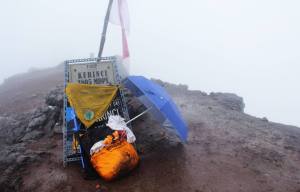 Pukul 06.30 saya mengenakan kembali pakaian saya berhujan-hujan kemarin. Lembab. Dingin, Tapi 5 menit kemudian sudah tak terasa karena suhunya sudah sama dengan suhu tubuh. Pukul 06.40 saya menutup pintu tenda, berdoa, dan mulai jalan panjang ke puncak.