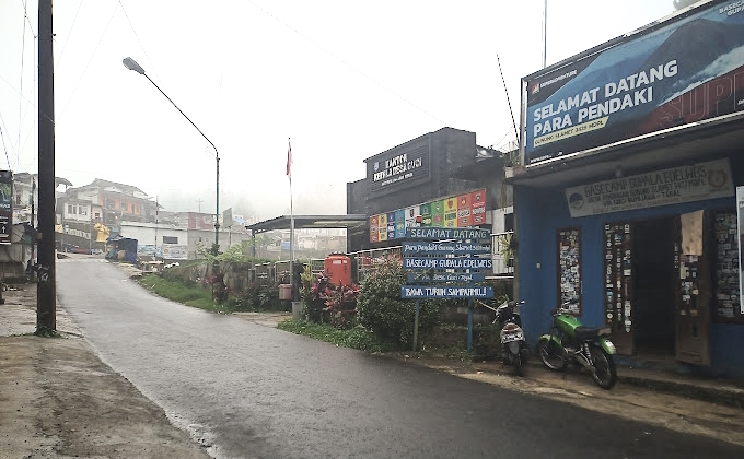 “Oh masnya terus aja. Nanti ketemu Indomaret. Ikuti saja jalannya, jalan aspal seperti ini, nanti ada basecamp-nya di kiri jalan.”