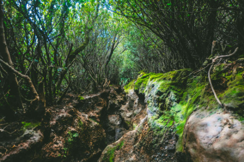 Jalan setapak mendaki di tengah hutan lebat. Saya senang bertemu beberapa pohon besar yang menghalang jalan, sehingga jalan sedikit memutari pohon.