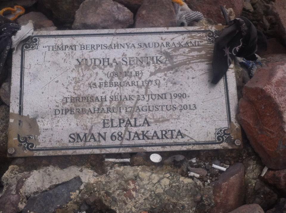 Tidak ada jalan dalam arti jalan setapak menuju ke puncak, kecuali sedikit di ketinggian 3.420an menuju gigir kawah. Karena itu Kompak dan Gupala membuat titik-titik dan tanda panah untuk diikuti dimulai dari batas vegetasi. Sebagai awalannya di pohon terluar diberi tanda dengan bendera merah putih kain dan rangkaian bendera merah putih plastik, bendera yang biasa kita pakai untuk dekorasi memeriahkan Hari Kemerdekaan.