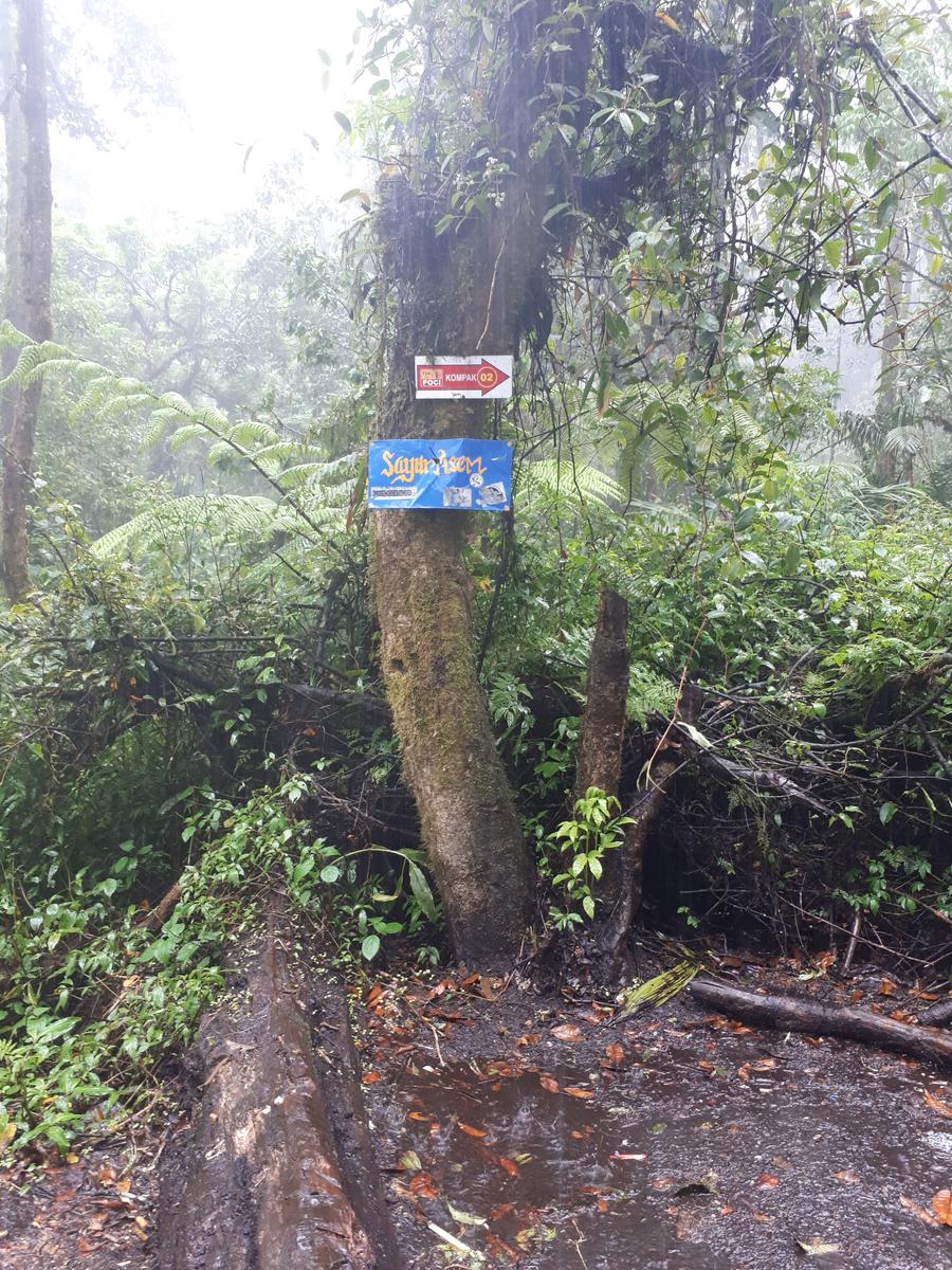 Karena memulai baru tengah hari, saya bilang pada Omenk yang piket hari itu di basecamp, saya kemungkinan besar akan ngecamp, mendirikan tenda di Pos 2. Lewat Pos 2 saya pasti akan kemalaman untuk menuju Pos 4 atau Mata Air yang ada di ketinggian 2.578 m, tempat biasa para pendaki menginap. Pos 4 ini lebih kurang 3 jam lagi dari puncak.