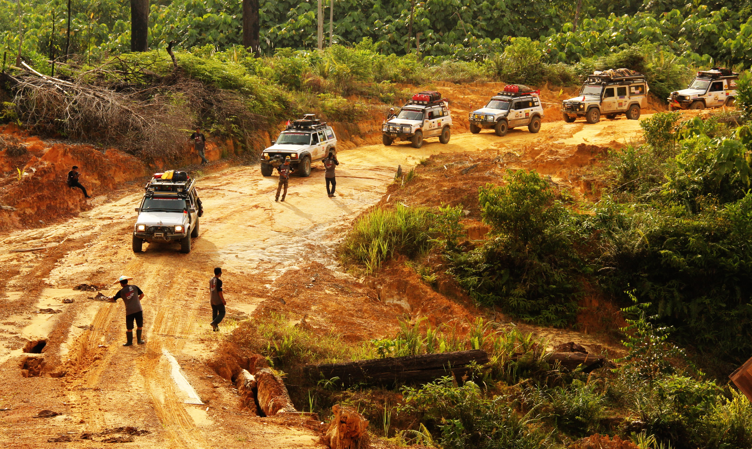 Baru sekitar pukul 16.00 tim menemui rintangan pertamanya. Bukan lumpur lengket dan jalan jelek. Bukan pula tanjakan terjal licin. Jalan laterit mulus lurus, tapi melintang di tengahnya sebatang raksasa yang tumbang.